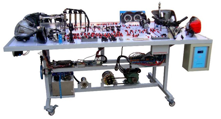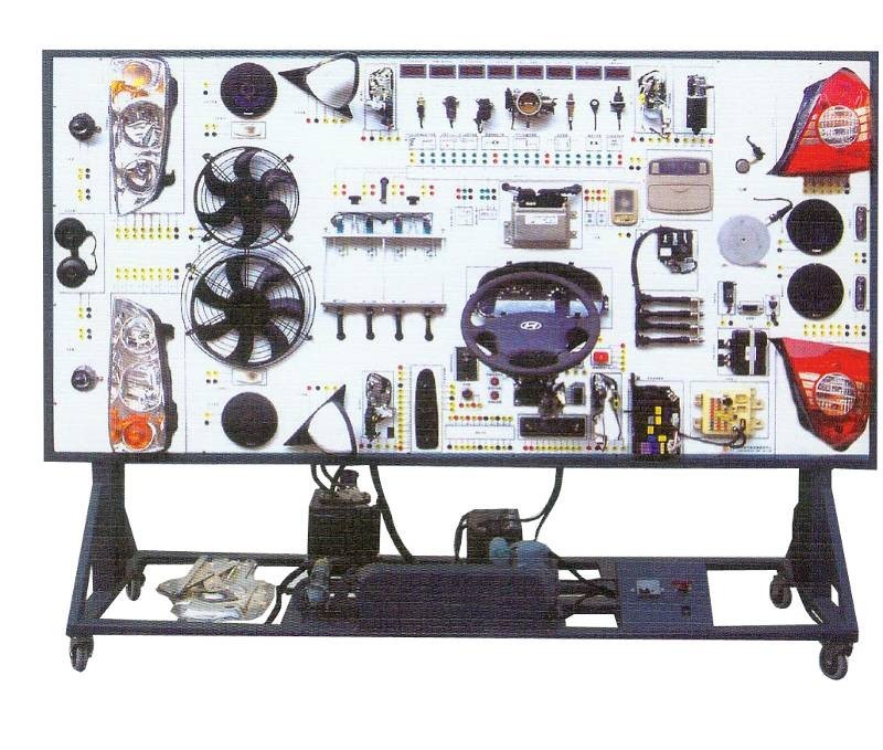 汽車電氣設備實訓室。汽車電器設備實訓室包含有汽車燈光系統(tǒng)、車載網(wǎng)絡系統(tǒng)、全車電器系統(tǒng)、汽車啟動系統(tǒng)、汽車空調系統(tǒng)、全車線路試驗臺、等實訓教學設備。該實訓室可以承擔《汽車構造》、《汽車電器設備》、《汽車電控系統(tǒng)》、《汽車檢測與診斷》等課程的實踐教學任務?梢杂糜谘芯、分析全車電器系統(tǒng)、燈光系統(tǒng)、儀表系統(tǒng)等電器設備的電路及功能。利用這些系統(tǒng)進行實踐教學,使學生熟悉汽車電器的結構和工作原理,掌握各個系統(tǒng)的基本組成電路,掌握主要電路的檢測方法和系統(tǒng)的故障特征,從而具有一定的檢測和調校能力。