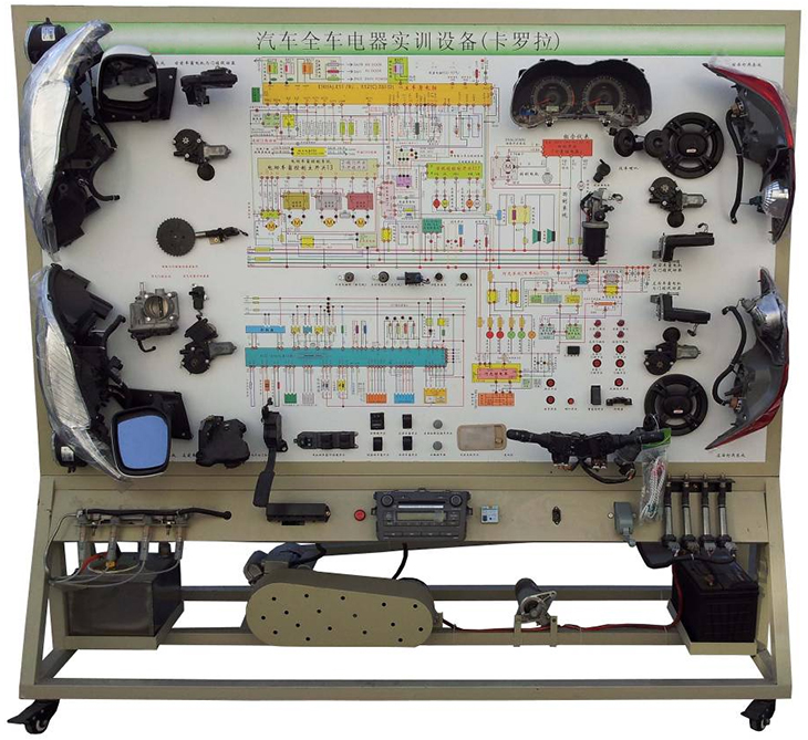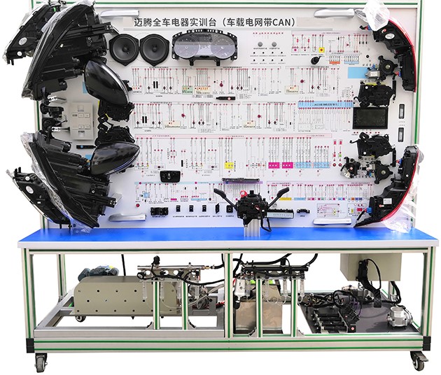 汽車電氣設(shè)備實訓室。汽車電器設(shè)備實訓室包含有汽車燈光系統(tǒng)、車載網(wǎng)絡(luò)系統(tǒng)、全車電器系統(tǒng)、汽車啟動系統(tǒng)、汽車空調(diào)系統(tǒng)、全車線路試驗臺、等實訓教學設(shè)備。該實訓室可以承擔《汽車構(gòu)造》、《汽車電器設(shè)備》、《汽車電控系統(tǒng)》、《汽車檢測與診斷》等課程的實踐教學任務(wù)?梢杂糜谘芯、分析全車電器系統(tǒng)、燈光系統(tǒng)、儀表系統(tǒng)等電器設(shè)備的電路及功能。利用這些系統(tǒng)進行實踐教學,使學生熟悉汽車電器的結(jié)構(gòu)和工作原理,掌握各個系統(tǒng)的基本組成電路,掌握主要電路的檢測方法和系統(tǒng)的故障特征,從而具有一定的檢測和調(diào)校能力。