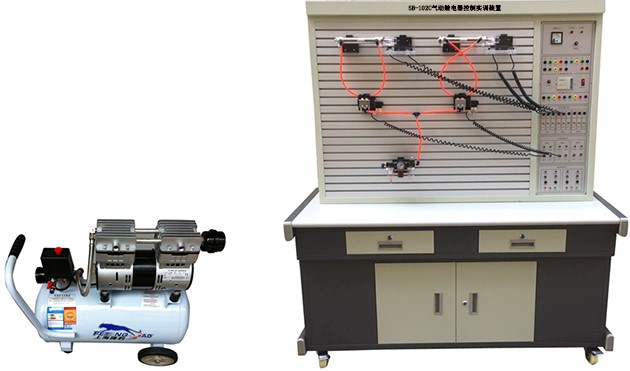 氣動繼電器控制實訓裝置,氣動實訓裝置是應現(xiàn)代液壓氣動專業(yè)教學實驗要求。根據(jù)《液壓與氣動傳動》,《氣動控制技術》等通用教材內(nèi)容設計而成。該系統(tǒng)除了可以進行常規(guī)的氣動基本控制回路實驗外,還可以進行模擬氣動控制技術應用實驗,氣動技術課程設計等。