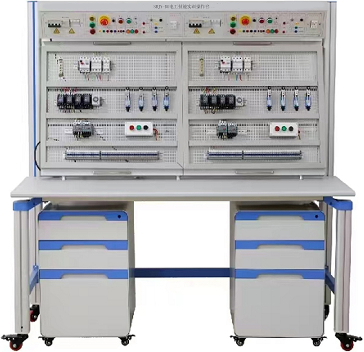 電工基礎(chǔ)實(shí)訓(xùn)室設(shè)備主要實(shí)踐教學(xué)包括:新生入學(xué)后的專業(yè)認(rèn)識實(shí)習(xí);電工基礎(chǔ)、電工電子技術(shù)等理論課程的現(xiàn)場教學(xué);電工(初級、中級)實(shí)訓(xùn)等集中實(shí)踐課。電工實(shí)訓(xùn)室設(shè)備,是結(jié)合本專業(yè)培養(yǎng)目標(biāo)和中級維修電工崗位技能培養(yǎng)教學(xué)要求,根據(jù)本專業(yè)電工基礎(chǔ)、電工電子技術(shù)等課程教學(xué)需要,維修電工考核實(shí)訓(xùn)平臺主要用于系統(tǒng)培養(yǎng)學(xué)生電路元器件識別檢測、安裝、調(diào)試及診斷維修能力。