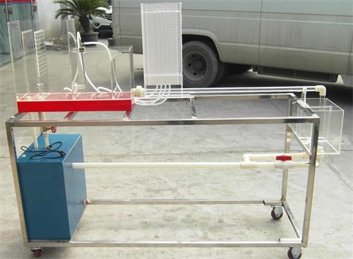 主要配置:儲水箱; 上水管;溢流管;整流柵;溢流板;溢流箱;畢托管;差壓計;閥門 測壓計;調(diào)節(jié)閥;回水箱;計量箱;回水管;移動式不銹鋼實驗臺。