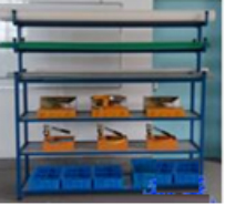 3、模塊中間模塊設(shè)計(jì)為貨架形式,配置有大量零件工具盒,適合安裝實(shí)訓(xùn)使用。