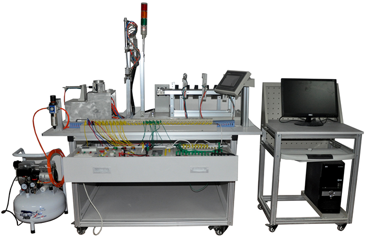 本設(shè)備主要包括實(shí)訓(xùn)臺(tái)架、典型的機(jī)電一體化設(shè)備的機(jī)械部件、PLC模塊、變頻器模塊、按鈕模塊、電源模塊、模擬生產(chǎn)設(shè)備實(shí)訓(xùn)模塊、接線端子排和各種傳感器等組成。整體結(jié)構(gòu)采用開放式和拆裝式,實(shí)訓(xùn)裝置用于機(jī)械部件組裝,可根據(jù)現(xiàn)有的機(jī)械部件組裝生產(chǎn)設(shè)備,也可添加機(jī)械部件組裝其他生產(chǎn)設(shè)備,使整個(gè)裝置能夠靈活的按教學(xué)或競(jìng)賽要求組裝具有生產(chǎn)功能的機(jī)電一體化設(shè)備。