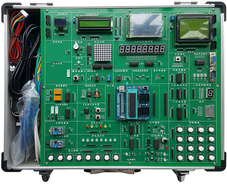單片機(jī)實(shí)訓(xùn)箱是將MCGS工業(yè)組態(tài)軟件應(yīng)用于單片機(jī)控制系統(tǒng)中,直觀形象地展示實(shí)際自動控制工業(yè)場景。平臺主要用于學(xué)習(xí)51/52系列單片機(jī)基礎(chǔ)應(yīng)用技術(shù)和綜合應(yīng)用技術(shù),包含有單片機(jī)原理、各類控制技術(shù)、各種數(shù)據(jù)通信技術(shù)、系統(tǒng)設(shè)計(jì)技術(shù)。向用戶提供眾多外圍器件和設(shè)備接口,可使用戶快速掌握單片機(jī)原理及其實(shí)用接口技術(shù),充分了解和掌握當(dāng)今單片機(jī)領(lǐng)域流行的各種外設(shè)器件應(yīng)用。