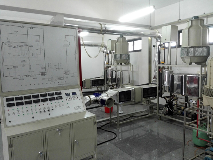 (1)具有蒸汽壓縮式集中式和半集中式中央空調系統(tǒng)的功能,主要由冷源系統(tǒng)、熱源系統(tǒng)、空氣處理及配送系統(tǒng)及控制與顯示系統(tǒng)等組成。可滿足學校既能開出驗證性實驗,也可以開設故障設置性實驗滿足畢業(yè)設計、教師科研、創(chuàng)新實驗室所需,能實現(xiàn)一機多用。