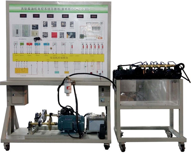 1.真實(shí)可運(yùn)行的共軌柴油發(fā)動(dòng)機(jī)燃油噴射系統(tǒng),充分展示燃油噴射系統(tǒng)的組成結(jié)構(gòu)和工作過程。電機(jī)驅(qū)動(dòng)曲軸位置信號(hào)輪,可演示電子燃油噴射工作情況。