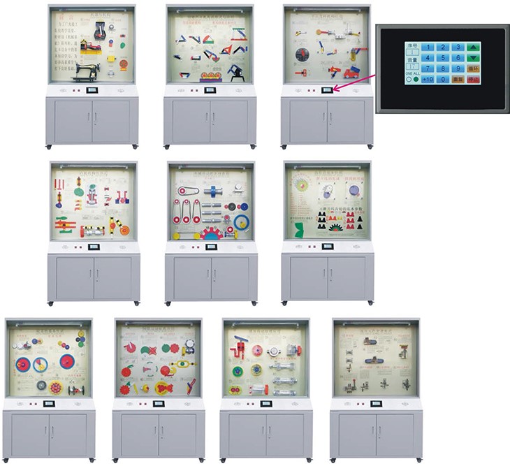 根據(jù)全國技工學(xué)校機械類通用教材《機械基礎(chǔ)》示教陳列柜是一套電化教學(xué)設(shè)備。本陳列柜共分十個柜,陳列柜通過機械模型或?qū)嵨,配合相?yīng)的圖文資料,形象地展示與解說機械基礎(chǔ)的基本知識,加強學(xué)生對通用機械基礎(chǔ)的類型、結(jié)構(gòu)特點及其設(shè)計的感性認(rèn)知,為進一步學(xué)習(xí)機械基礎(chǔ)奠定基礎(chǔ)。