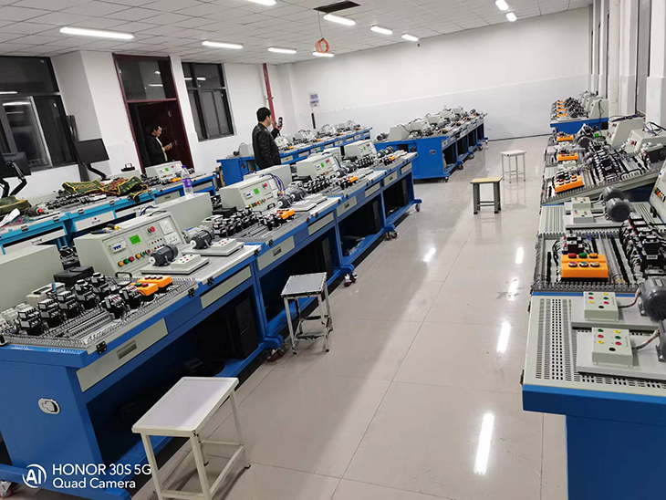 電氣安裝與維修實(shí)訓(xùn)室包含了電氣安裝與維修設(shè)備、電氣安裝與維修考核裝置、電氣照明設(shè)備安裝調(diào)試技能實(shí)訓(xùn)裝置該設(shè)備包含的實(shí)訓(xùn)功能有:照明電路裝調(diào)實(shí)訓(xùn);電力拖動(dòng)控制線路裝調(diào)實(shí)訓(xùn);PLC控制技術(shù)應(yīng)用實(shí)訓(xùn);變頻器控制技術(shù)應(yīng)用實(shí)訓(xùn);觸摸屏技術(shù)應(yīng)用實(shí)訓(xùn);傳感器技術(shù)應(yīng)用實(shí)訓(xùn);步進(jìn)、伺服電機(jī)的控制實(shí)訓(xùn);CA6140車床電路檢修、M7120磨床電路檢修、T68鏜床電路檢修、X62銑床電路檢修等,是電氣自動(dòng)化專業(yè)、機(jī)電一體化專業(yè)中多門核心課程的通用實(shí)訓(xùn)設(shè)備。