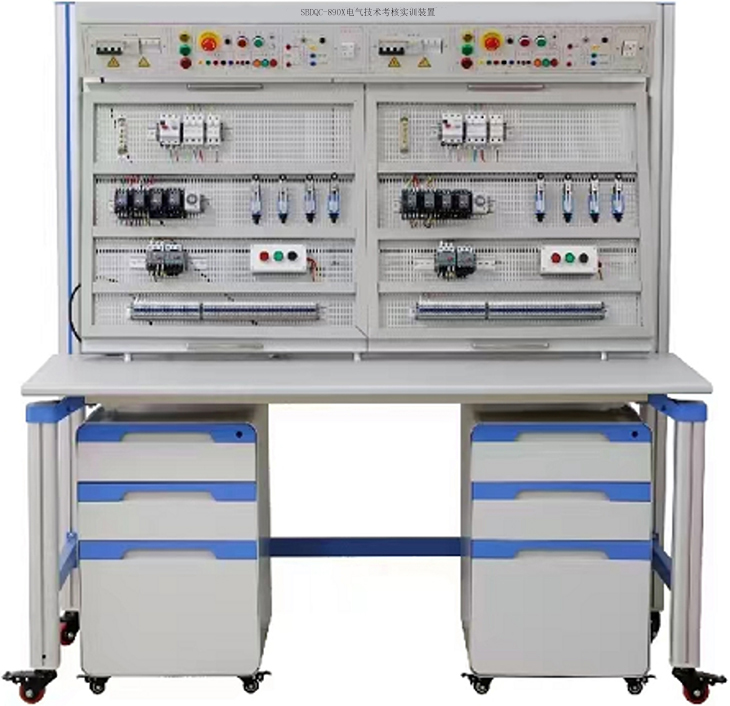 電氣安裝與維修實訓考核裝置是根據(jù)工廠電氣安裝和室內(nèi)電氣安裝等維修 電工和電氣安裝工實訓鑒定要求開發(fā)的一種通用實訓平臺。 適合于各類職業(yè)院校 和技工學校維修電工、 電氣安裝工、水電工等有電氣實訓要求的相關專業(yè)的作為 公共實訓平臺使用。 采用鋼制網(wǎng)孔板和鋼制專用型材組接而成,安裝有自鎖式腳輪,方便移動和使用。裝 置表面噴塑,色彩穩(wěn)重氣派。電氣安裝與維修實訓裝置設計高度以人站在一級人字梯即可方便操作的高度,既安 全又能使使用者感受到施工現(xiàn)場環(huán)境。 橫向、 叢向?qū)挾群线m, 可以模擬現(xiàn)場線路的轉(zhuǎn)向布置。