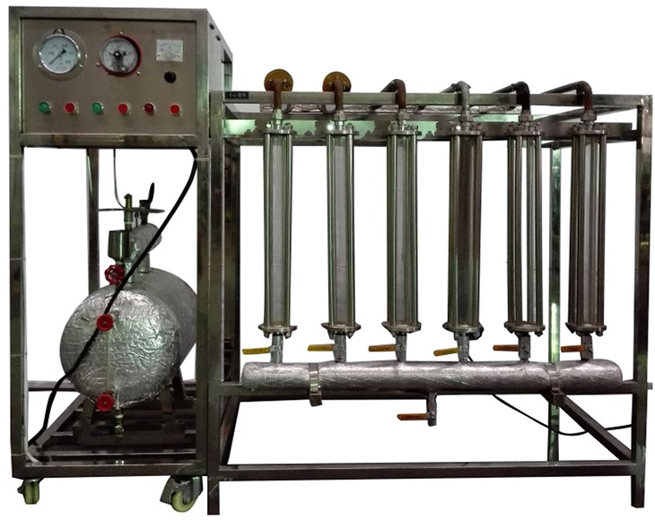 紫銅傳熱管道(銅裸管、涂黑管、翅片管、玻璃絲棉保溫管、鋸末保溫管、鍍鉻管各一組),調節(jié)閥門組,蒸汽發(fā)生器,熱風幕風機,壓力控制器及溫度保護裝置,不銹鋼臺架及控制屏等。